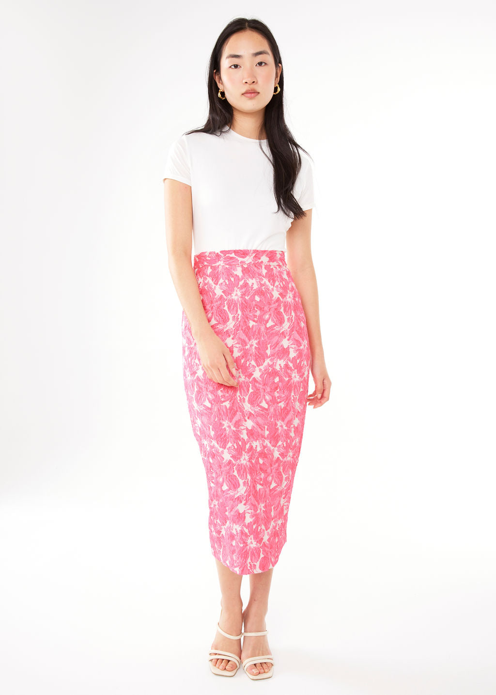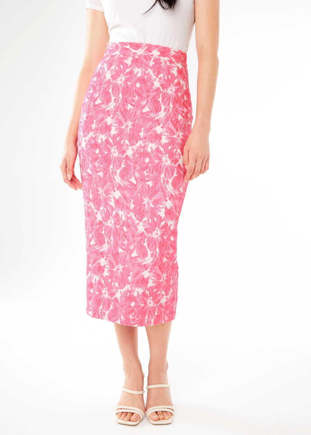 Julia Pencil Skirt Hot Pink Hibiscus Jacquard