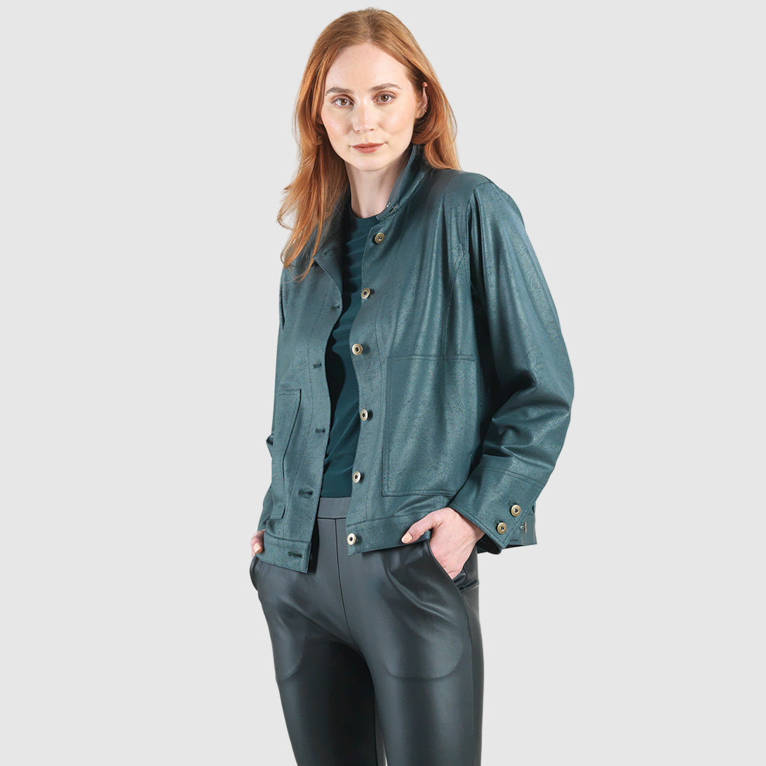 Liquid Leather™ Button Closure Pocket Jacket - Hunter Green - Limited Sizes!