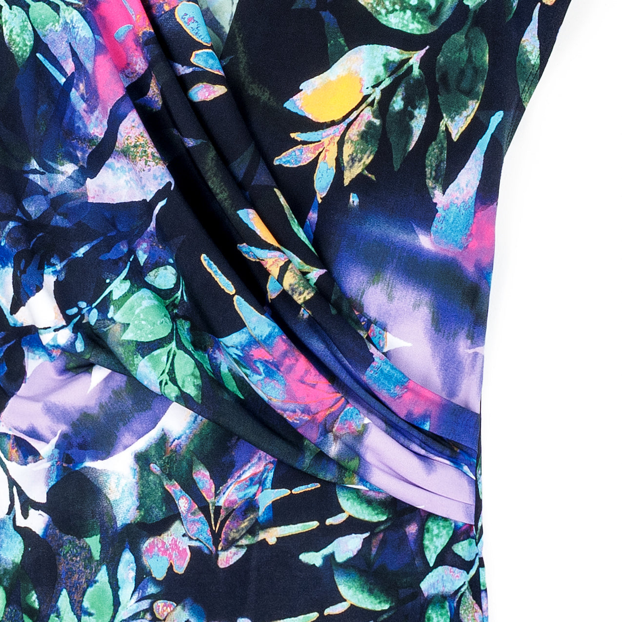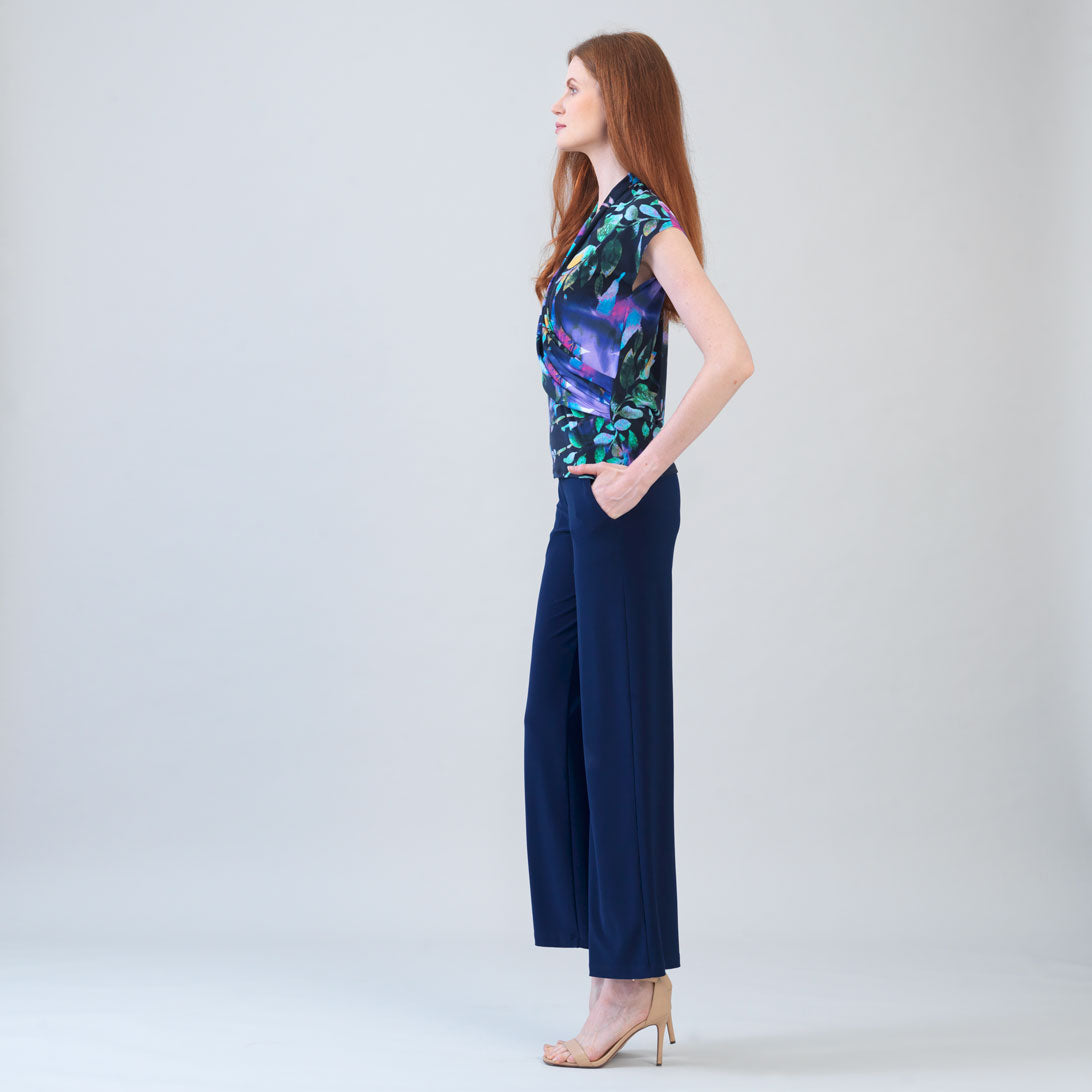 Our Floral Dream Surplice Crossover Top is where beauty imagined becomes reality. This style features a sleeveless silhouette with a cap-like shoulder finish and a surplice crossover front that creates a flattering v-neckline enhanced by draped detailing that cascades gracefully over the bodice with subtle cinching at the side to naturally contour the waist to create a figure-accentuating silhouette.