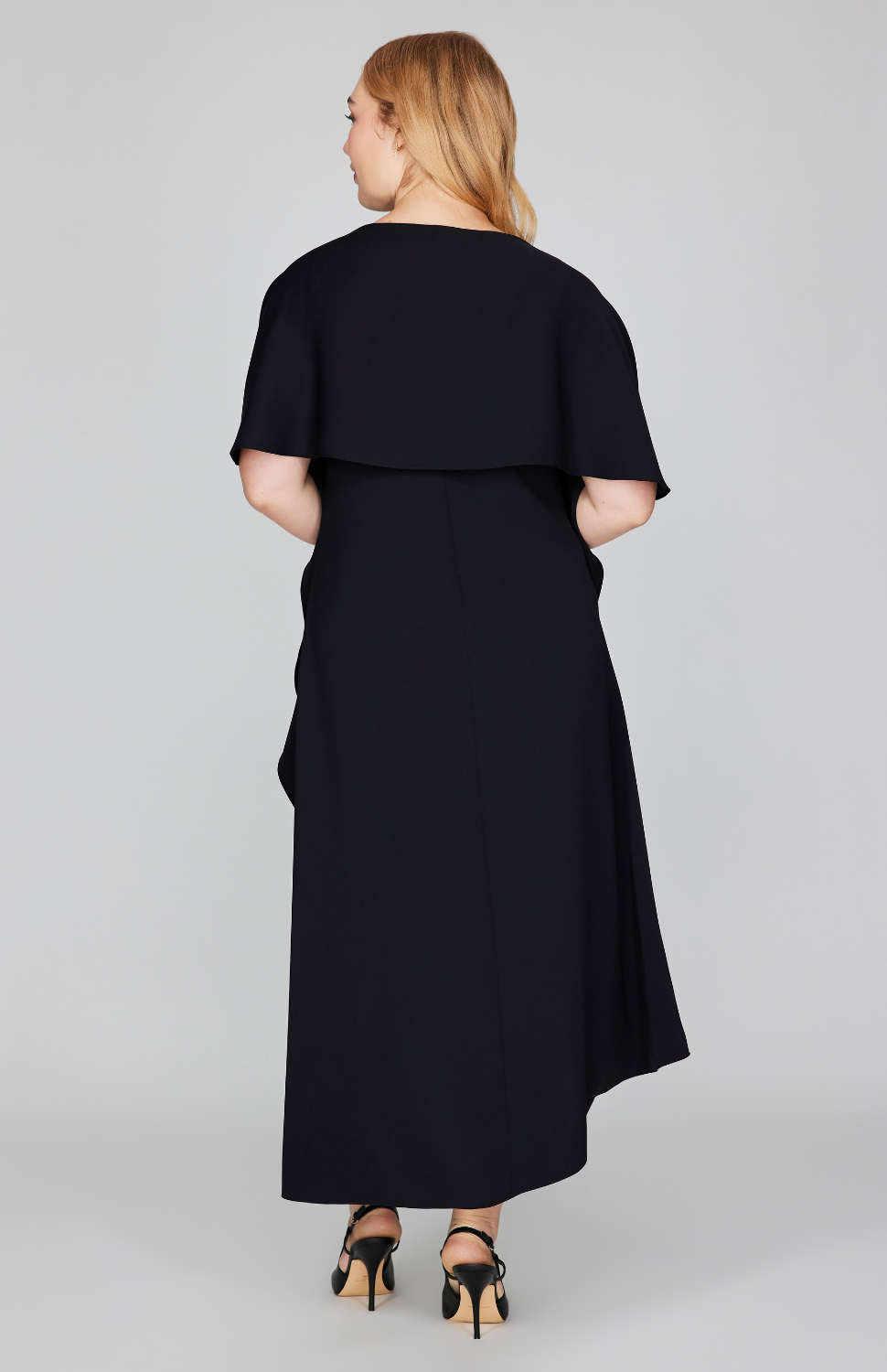 This elegantly curved shawl in Lustrous Crepe is the perfect addition to a sleeveless dress. Allow yourself the flexibility and comfort on your most special occasions.