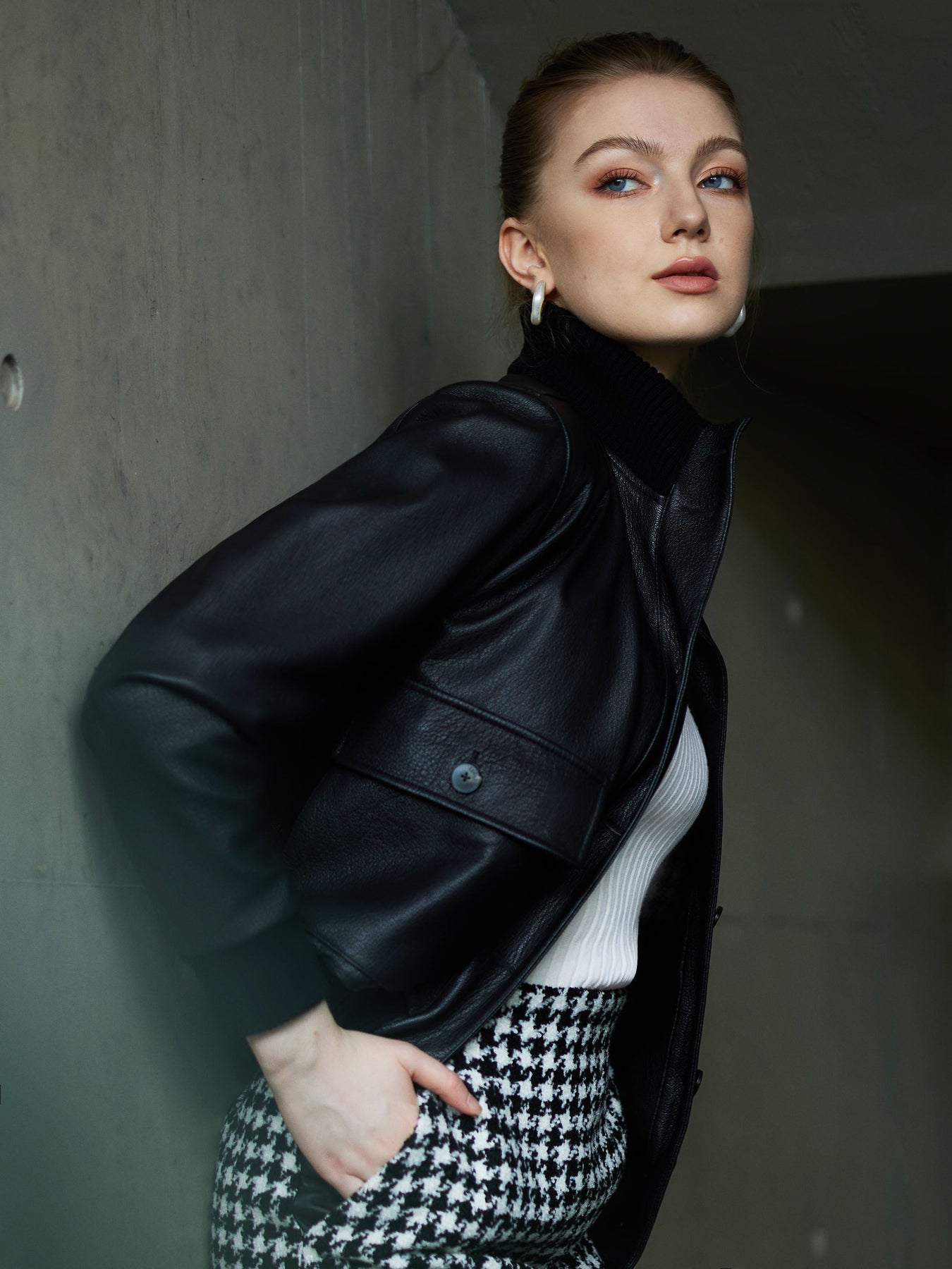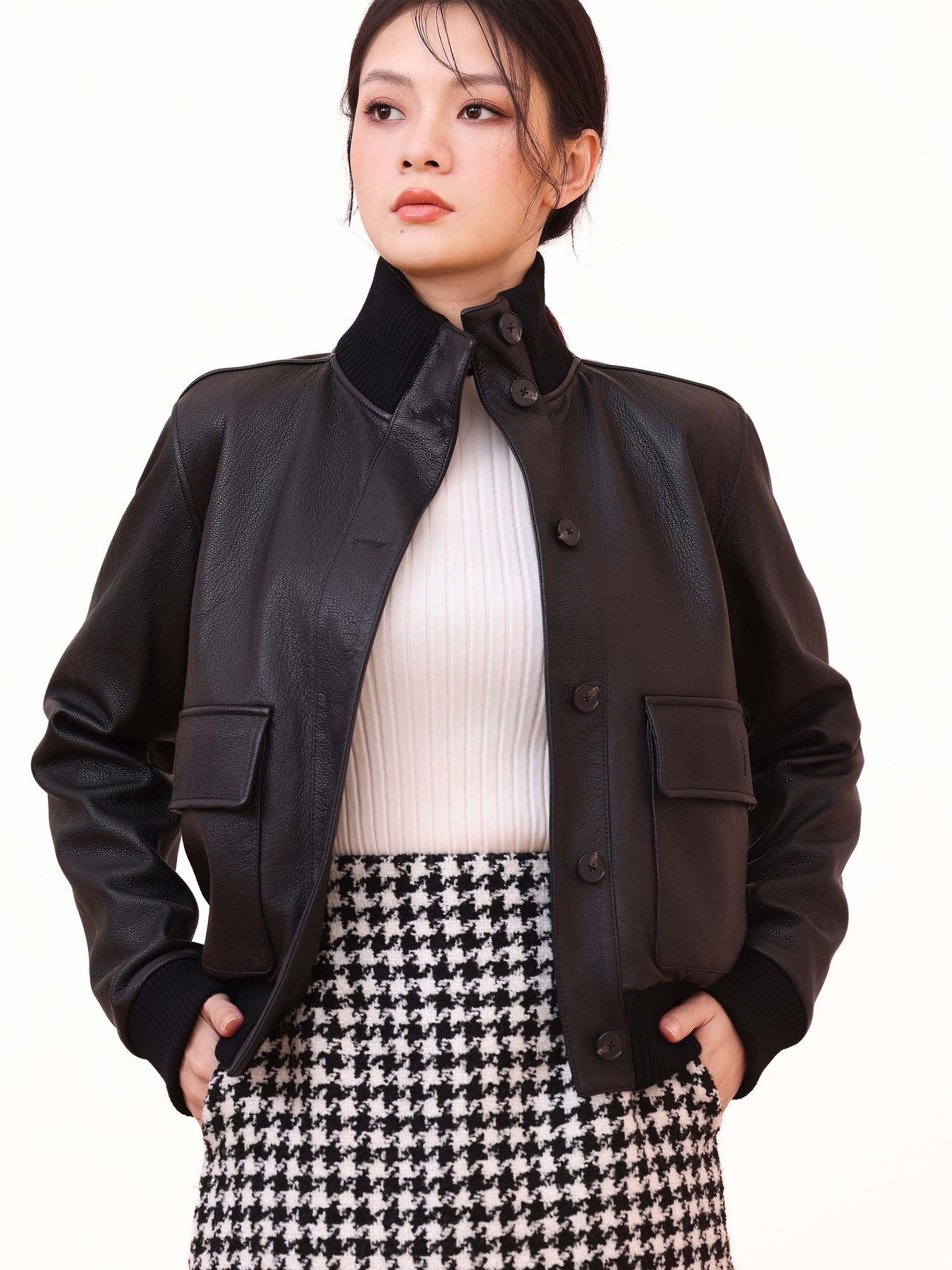 This durable blend of acrylic, polyester, and sheep wool offers softness and longevity. Subtle 100% lambskin detailing along the front pockets adds a modern edge to this classic piece, making it a versatile addition to your collection.