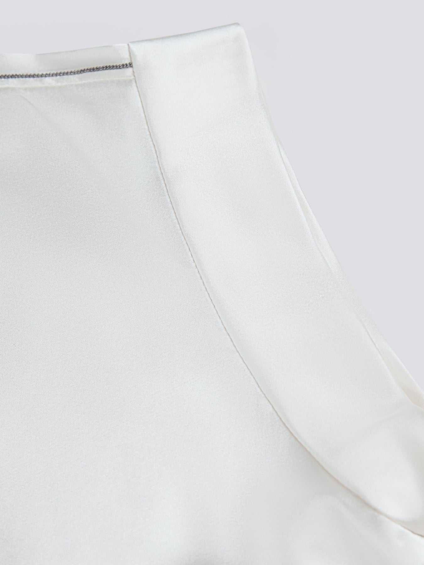This garment is crafted from 100% medium-weight silk crepe satin, renowned for its exceptional softness. Made with premium 6A grade white silk fibers, this fabric has a smooth, lustrous surface and a pear-like sheen. Handle with care, as this silk may experience shrinkage, potential wrinkling, and reduced luster after washing.