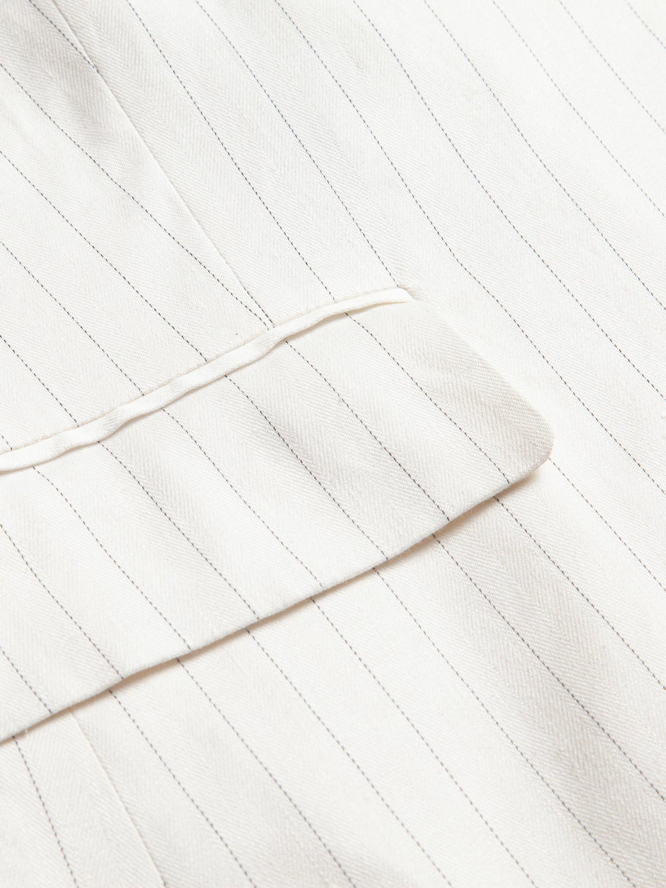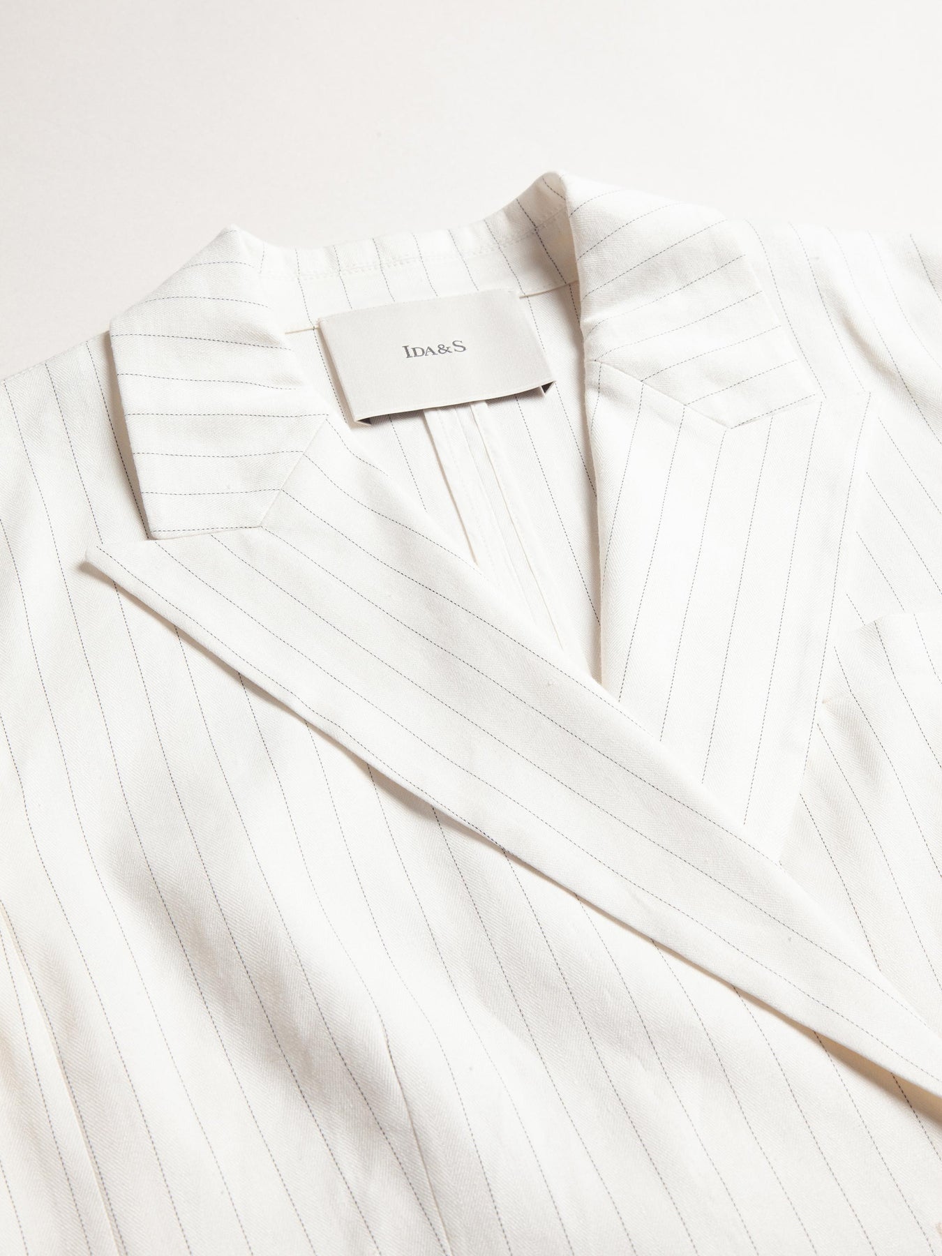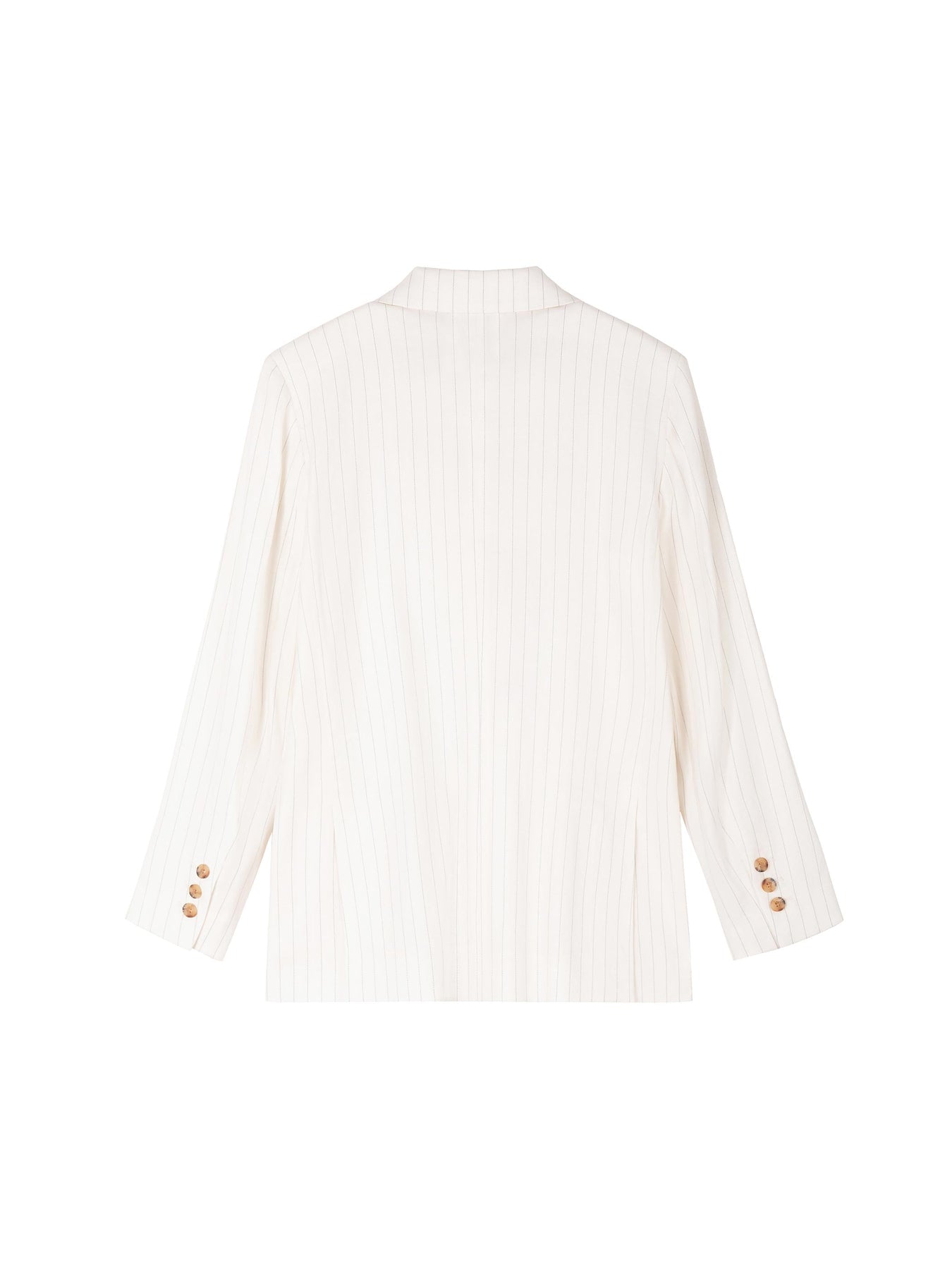 Crafted from premium linen, our Pinstriped Linen Suit Blazer offers lightweight breathability, making it ideal for warmer weather and versatile for layering throughout the seasons. Designed with a relaxed fit and single button, this blazer combines casual sophistication with notched lapels, a single-breasted front, and welt pockets for a refined finish. Dress it down with jeans or pair it with our Pinstriped Linen Suit Elastic Waist Pants for a semi-formal ensemble. Its half-lined construction and side vents enhance comfort and promote airflow, making it perfect for summer months.