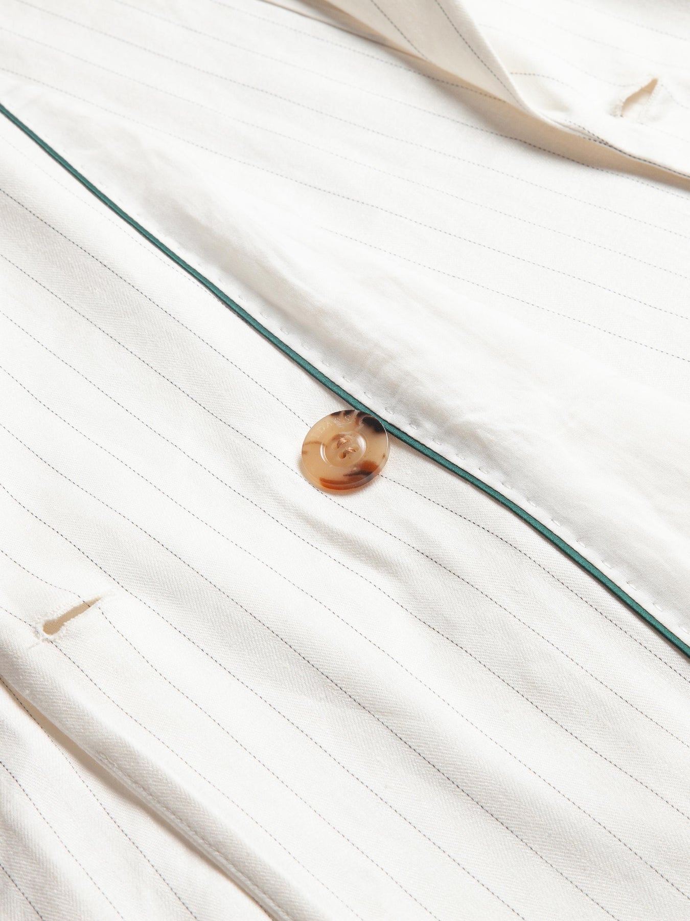 This design features a yarn-dyed blend of linen, viscose, and polyester, combining the best qualities of each fiber for a soft, cool feel. The fabric is woven into a durable herringbone twill that resists pilling and maintains its texture over time. Although this fabric is not entirely eco-friendly, we are committed to ongoing learning and improvement to enhance our sustainability practices and better align with environmentally conscious standards.