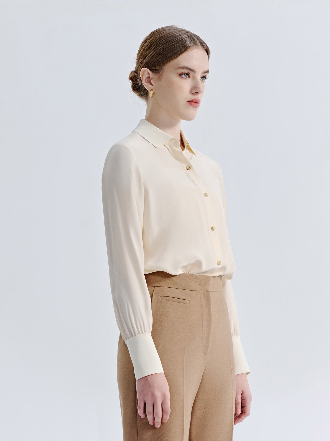SILK BUTTONED DOWN BLOUSE WITH ELASTIC SLEEVE DETAIL
