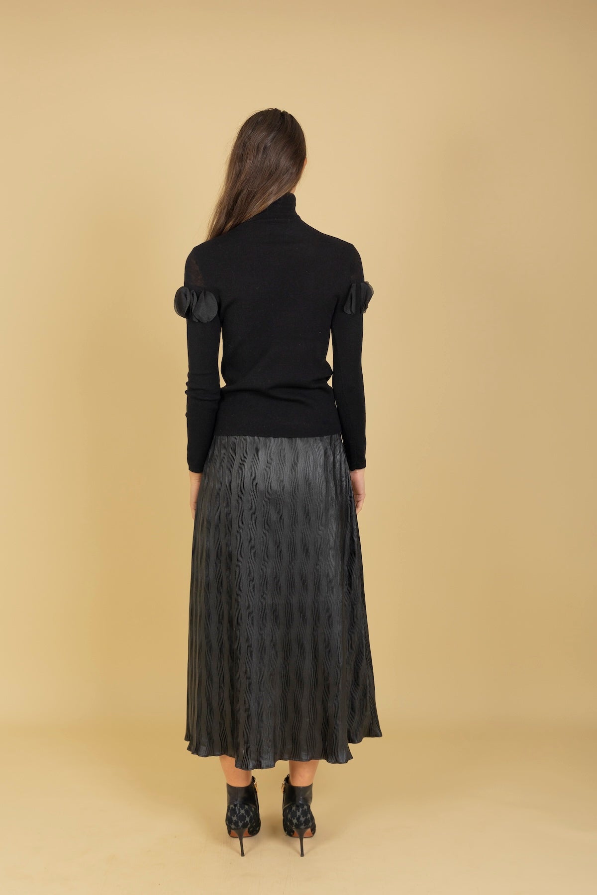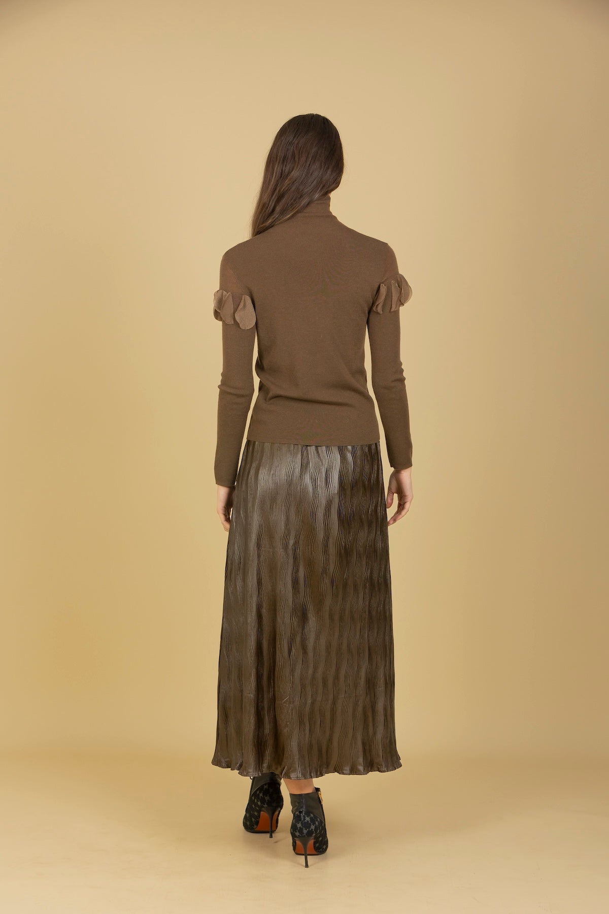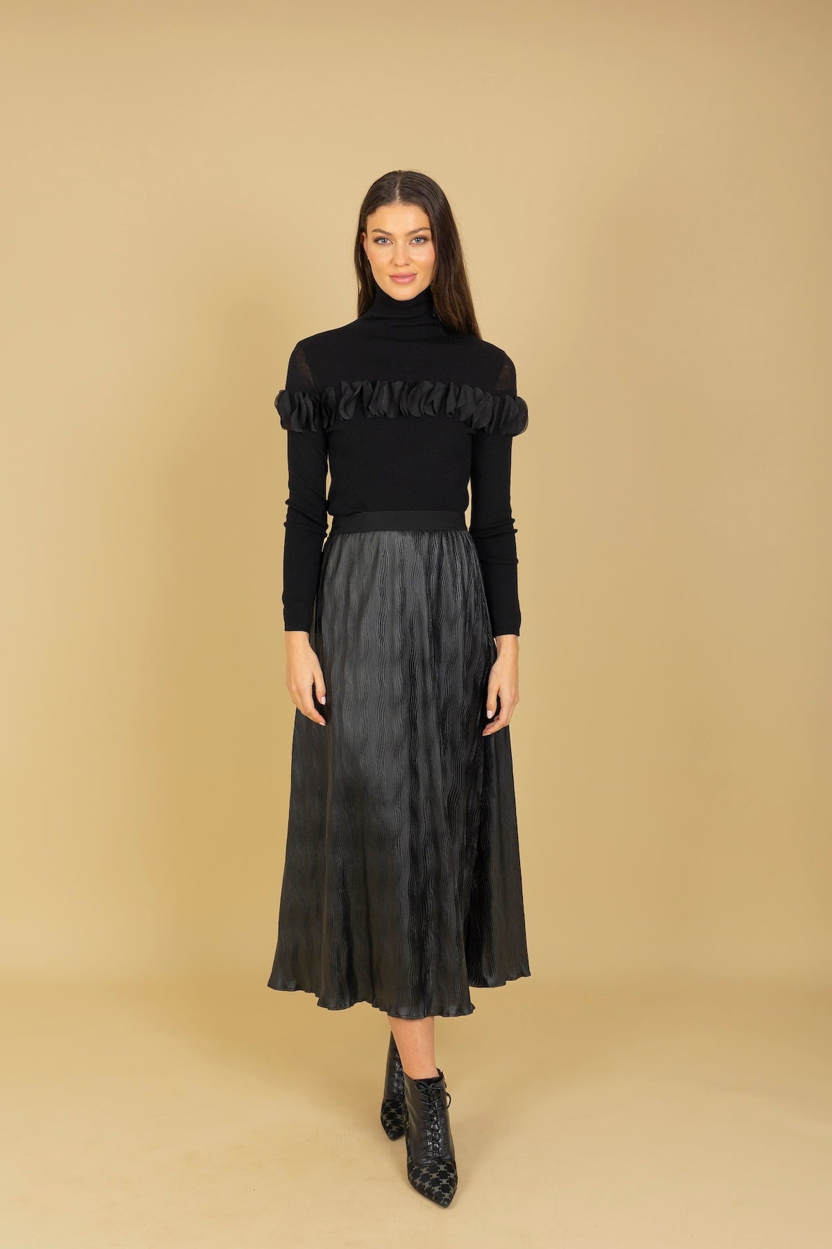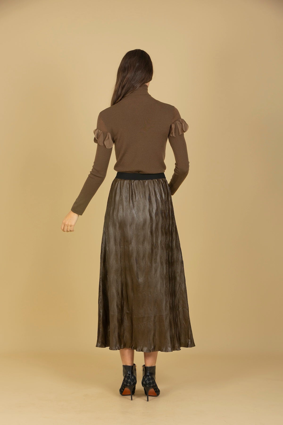 Pleated Midi Skirt with Elastic Waistband