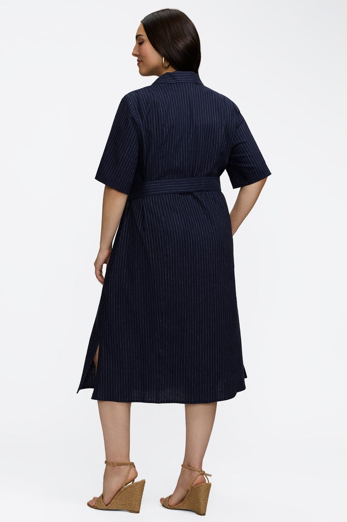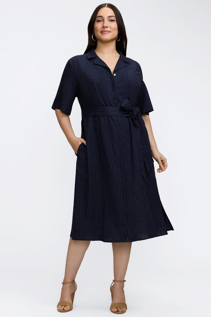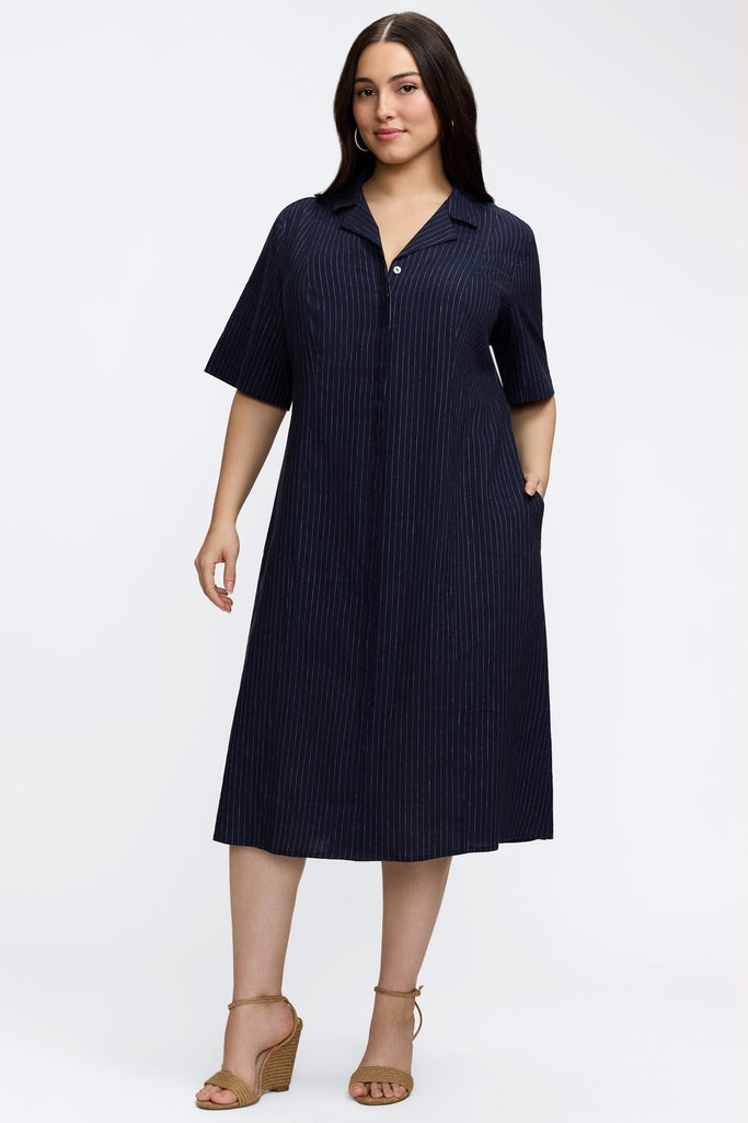 Aniston Plus Pinstripe Linen Short Sleeve Dress