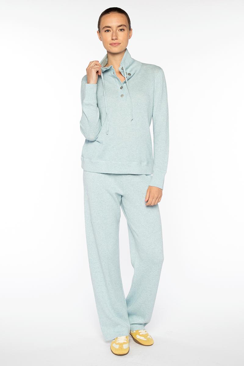 TEXTURED DRAWSTRING MOCK PULLOVER