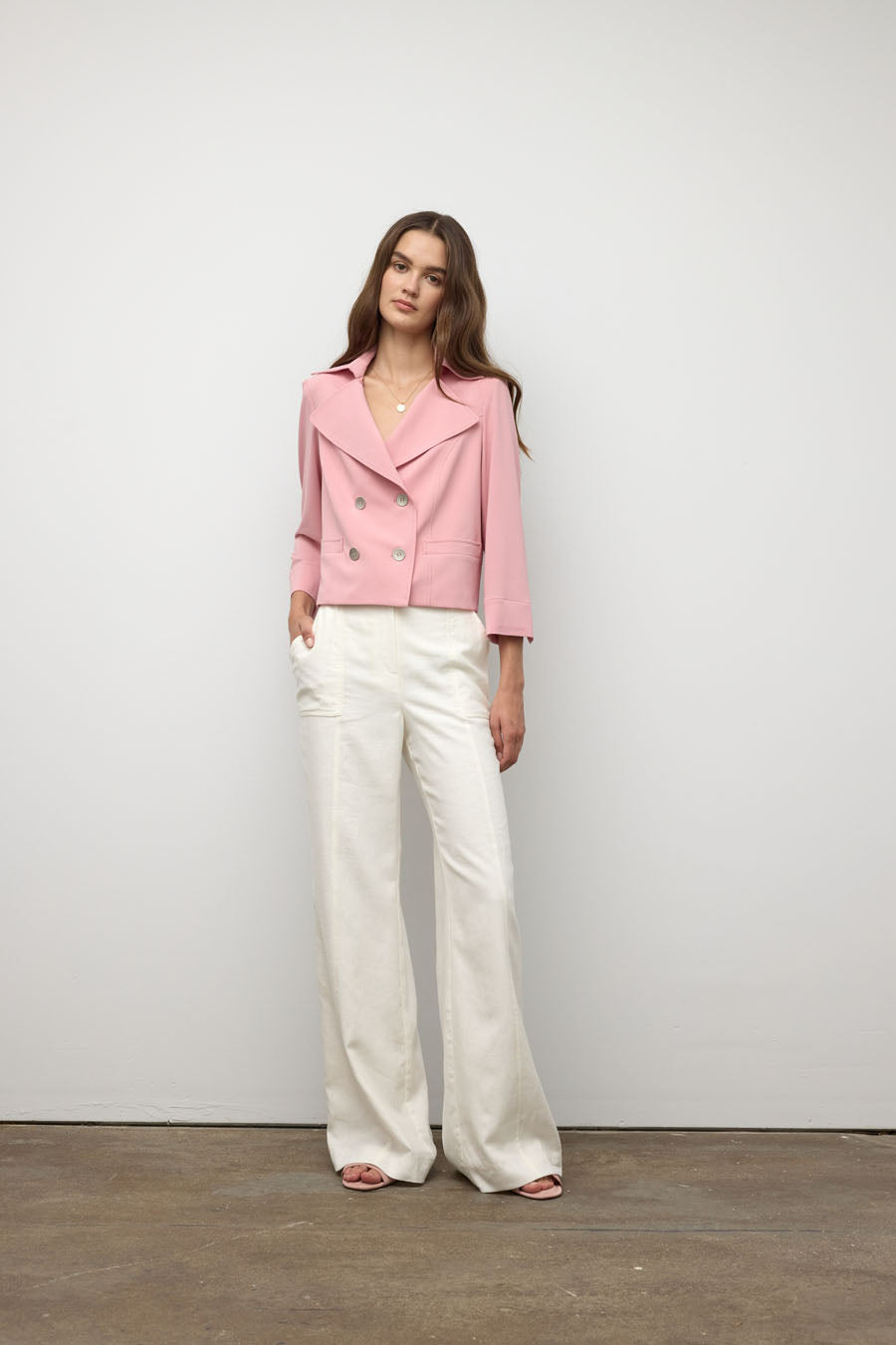 Embrace the matte jersey of our travel collection with this short jacket. Easy-care and comfortable for all occasions. You'll fall in love with the button detailing and cut.
